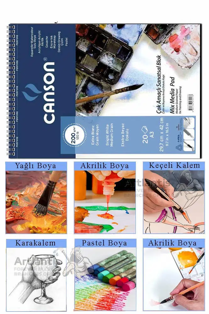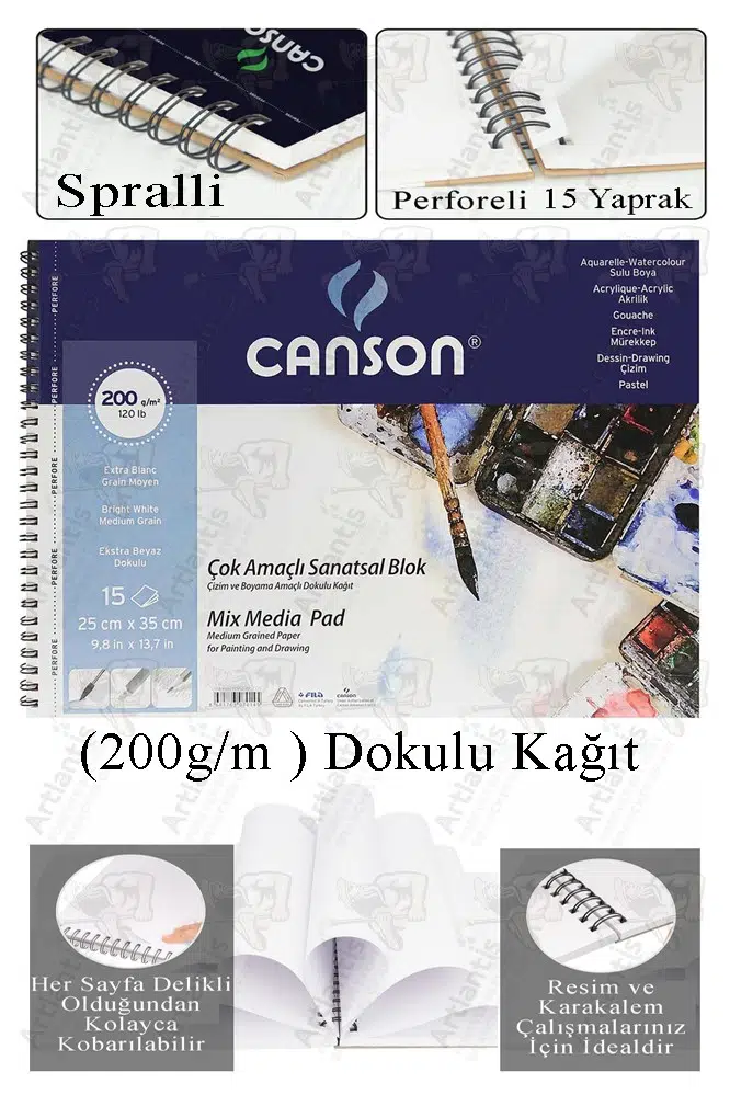 Ürün Adı: Çok Amaçlı Sanatsal Blok 25x35 cm 200 gr 15 Yaprak 1 Adet Canson Resim Defteri Akrilik Yağlı Guaj Keçeli Sulu Boya
