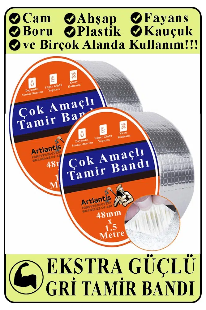 | Etiketler | Çok Amaçlı Tamir Bandı 2 Adet Su Geçirmez Sızdırmaz Isıya Dayanıklı Sakız İzole Gri Tamir Bant 48mm 1.5 Metre |