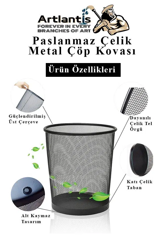 | Etiketler | Çöp Kovası Paslanmaz Çelik Siyah Fileli 1 Adet Ofis Büro Okul vb.Çöp Kovası Metal Delikli Kolay Kullanım |