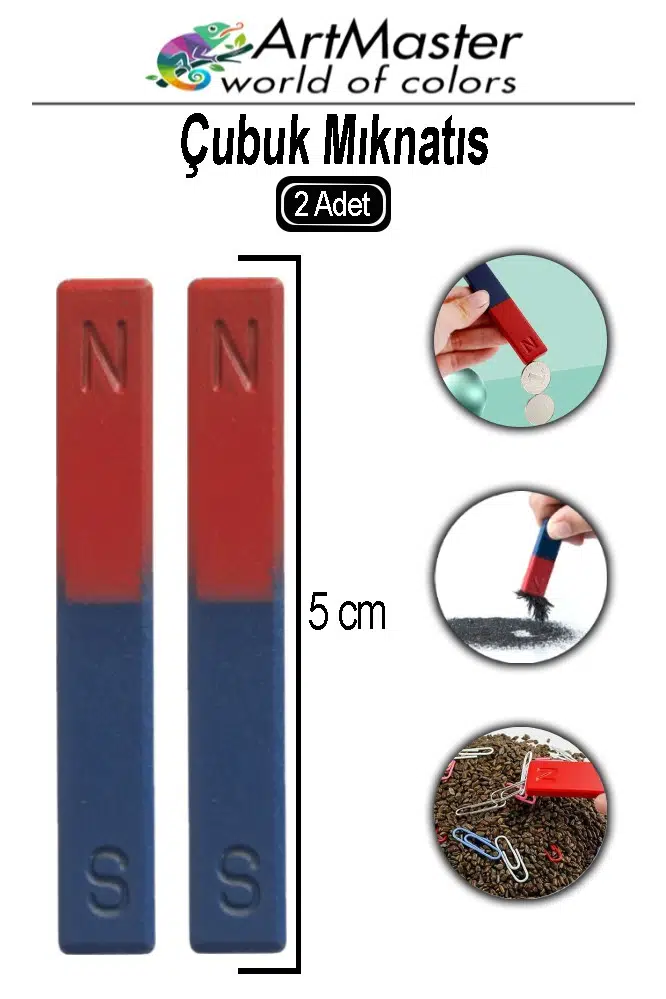Ürün Adı: Artmaster Çubuk Mıknatıs 2 Adet Deney Malzemesi Kırmızı Mavi Boyalı Okul Projeleri İçin I Şekilli Manyetik Çubuk Mıknatıs