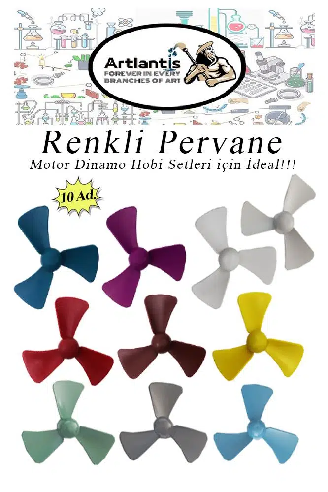 Ürün Adı: Artlantis 3 Kanatlı Renkli Pervane 10 Adet
