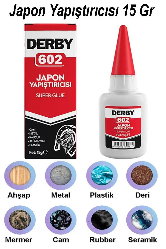 Ürün Adı: Derby 602 Japon Yapıştırıcı 15 gr 1 Adet Yüksek Yapıştırma Gücü Tek Bileşenli Düşük Viskozite Güçlü Yapıştırıcı 15gr