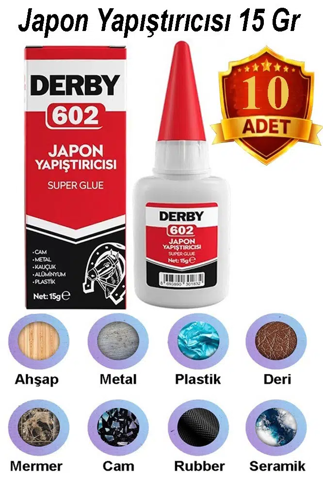 Ürün Adı: Derby 602 Japon Yapıştırıcı 15 gr 10 Adet Yüksek Yapıştırma Gücü Tek Bileşenli Düşük Viskozite Güçlü Yapıştırıcı 15gr
