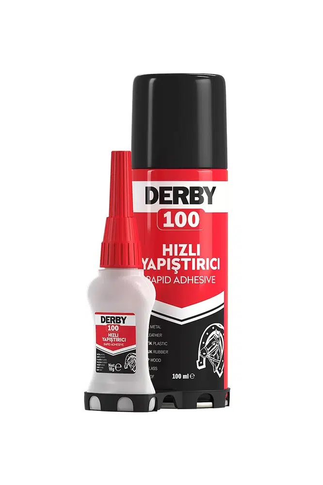 ·Derby 100ml Hızlı Yapıştırıcı yüksek viskoziteli siyanoakrilat bazlı, aktivatör ile hızlı kürleşen ve mükemmel sonuç veren bir yapıştırıcı setidir.