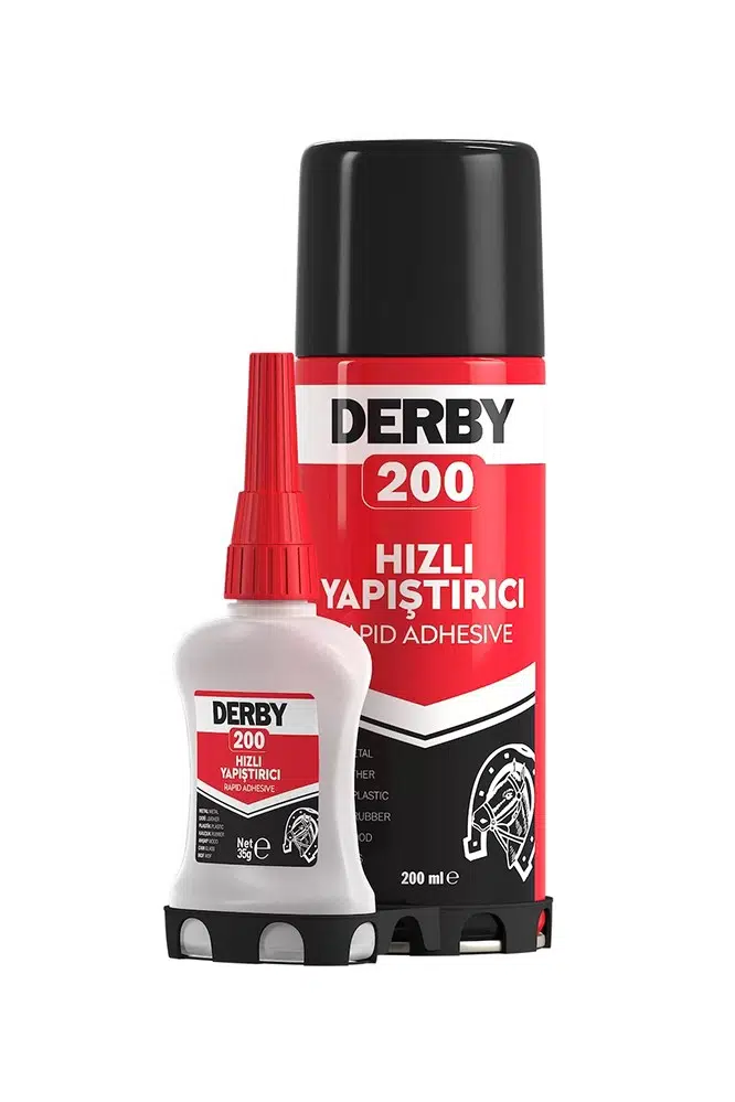 ·Derby 200ml Hızlı Yapıştırıcı yüksek viskoziteli siyanoakrilat bazlı, aktivatör ile hızlı kürleşen ve mükemmel sonuç veren bir yapıştırıcı setidir.
