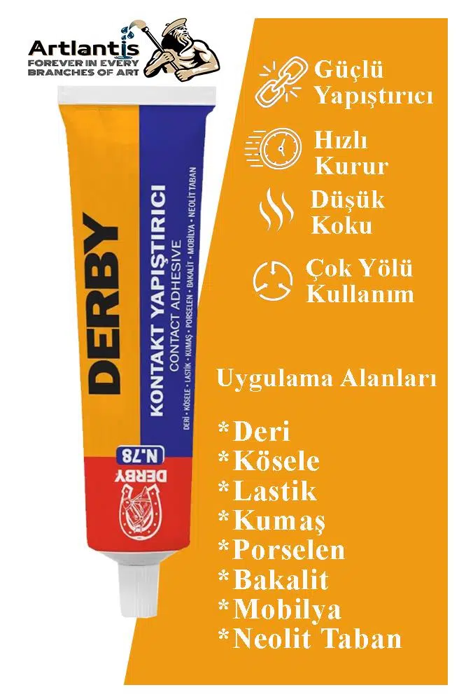 Ürün Adı: Derby Yapıştırıcı 40 gr Tüp 1 Adet Kontakt Sıvı Yapıştırıcı Deri Kösele Lastik Kumaş Porselen Mobilya Yapıştırıcı