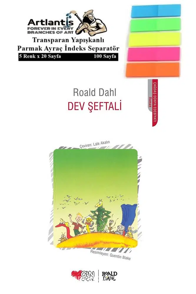 Ürün Adı: Dev Şeftali Roald Dahl 165 Sayfa Karton Kapak 1 Adet Fosforlu Transparan Kitap Ayraç 1 Paket