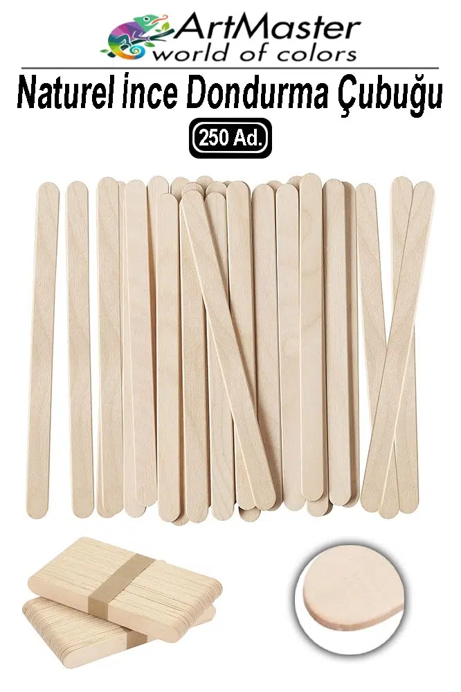 Ürün Adı: Artmaster Dil Çubuğu İnce 250 Adet Ahşap Naturel Dondurma Çubuğu Okul Proje Tasarım Maket Hobi Dar Dil Çubuğu