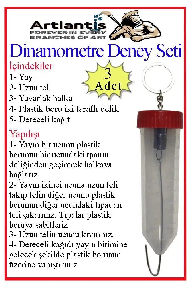 Ürün Adı: Dinamometre Deney Yapım Seti 3 Adet Deney Proje Tasarım Şırıngalı Basit Dinomometre Modeli Deney Malzemesi Okul Sınıf