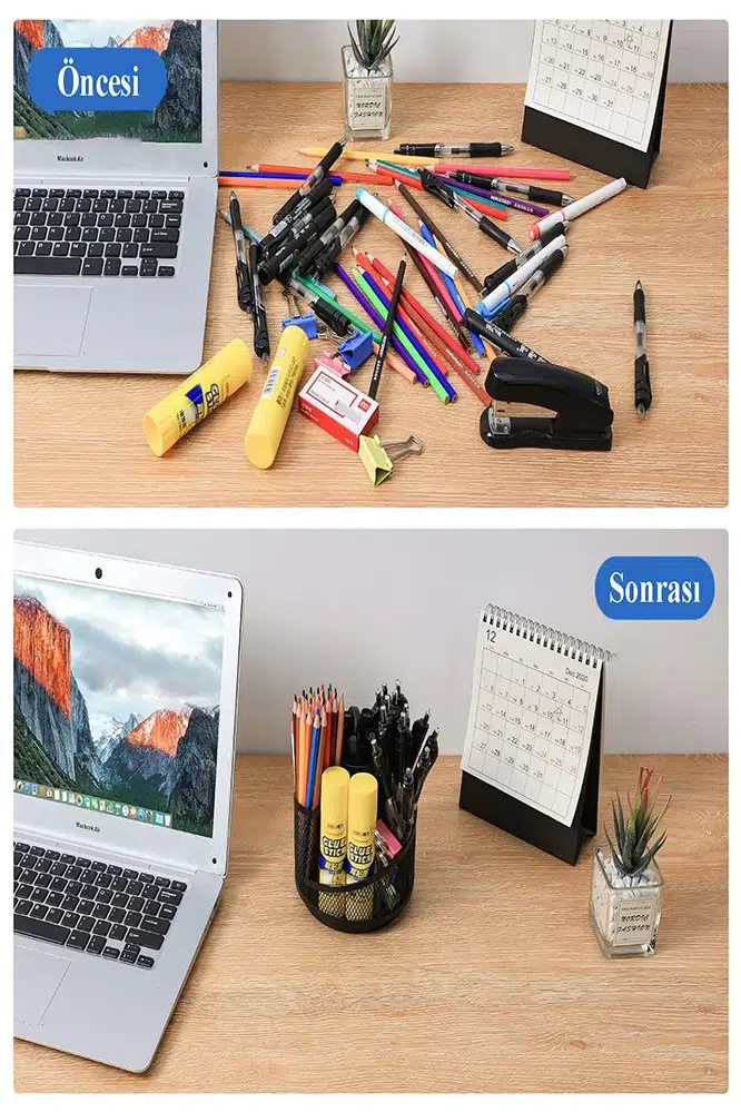 | Etiketler | Döner Masaüstü Düzenleyici Organizer Metal 1 Adet Fileli Kalemlik Siyah Renk Hareketli Kalemlik 360 Derece Döner |