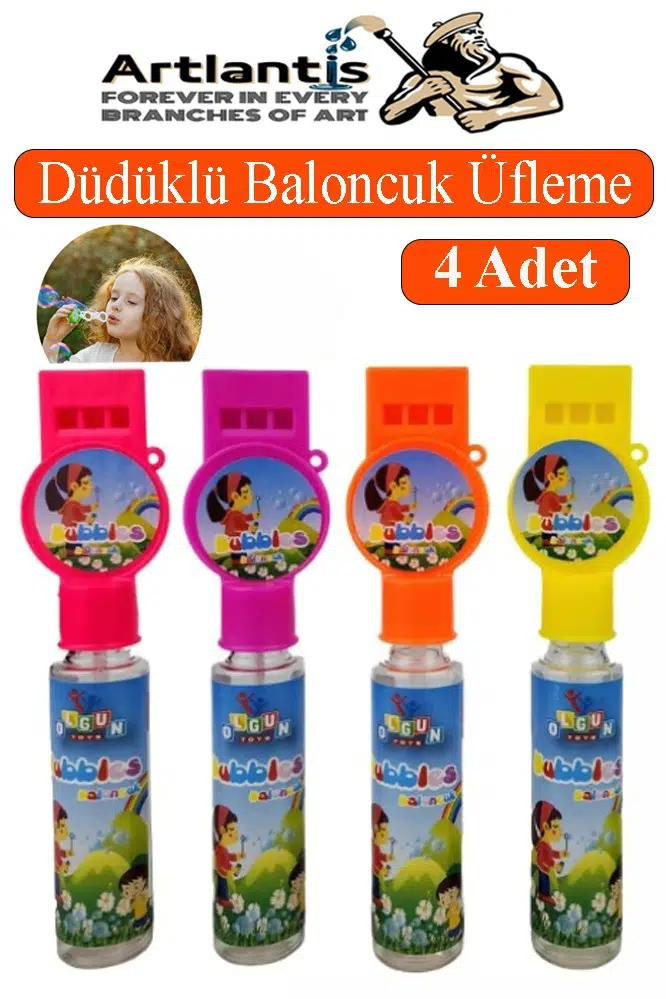 Ürün Adı: Artlantis Düdüklü Baloncuk Üfleme 4 Adet Çocuklar İçin Köpük Baloncuk Köpük Üfleme Oyuncağı Sınıf Karne Hediye Parti