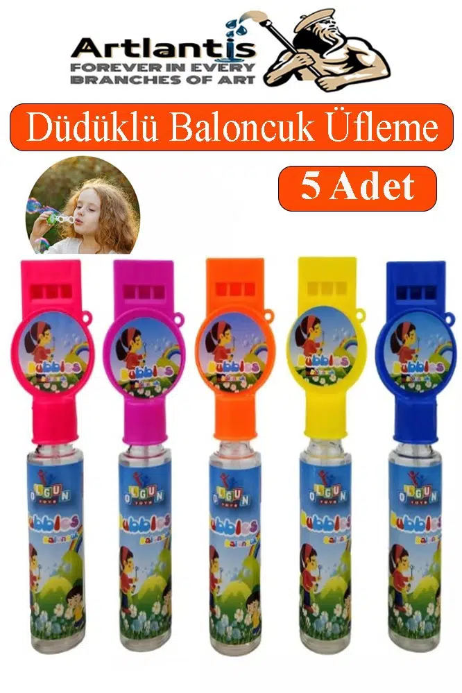 Ürün Adı: Artlantis Düdüklü Baloncuk Üfleme 5 Adet Çocuklar İçin Köpük Baloncuk Köpük Üfleme Oyuncağı Sınıf Karne Hediye Parti