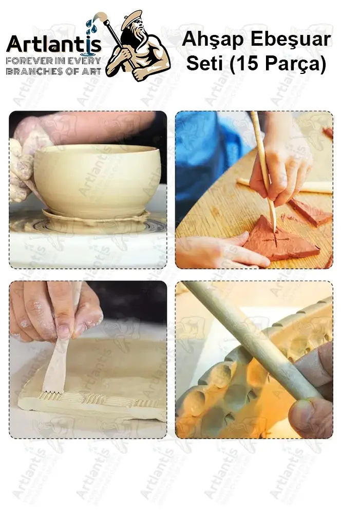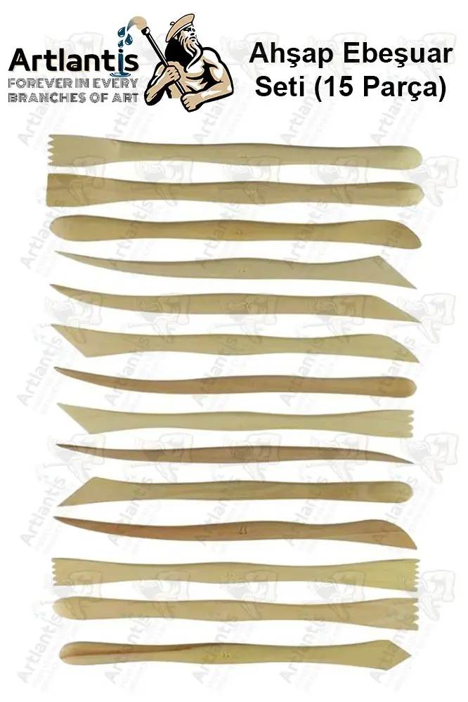 Ürün Adı: Ebeşuar Seti 15 li 20 cm 1 Paket Ahşap Modelaj Modelleme Aletleri Seramik Kil ve Heykel Modelaj Kalemi