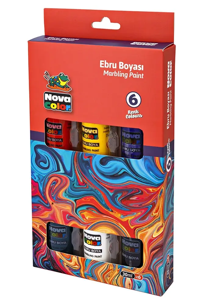 Ürün Adı: Ebru Boyası 6 Renk Nova Color 1 Paket Damlalıklı Canlı Renkli 30 ml X 6 lı Ebruli Boyama Seti