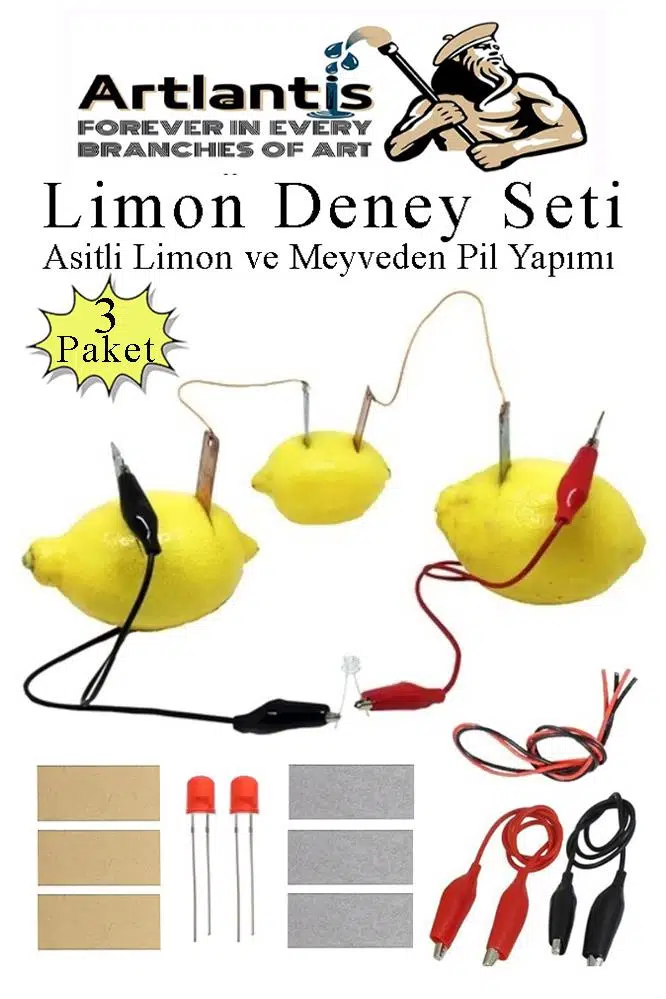 Ürün Adı: Elektrik Limon Deney Seti 3 Paket Limondan Elektrik Üretme Seti Limon Pili Fen Bilgisi Dersi Kimyasal Enerji