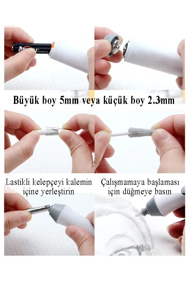 Ürün Adı: Elektronik Silgi Pilli 1 Paket Otomatik Taşınabilir Kalem Silgi Karakalem Eskiz Çizim Grafit Elektrikli