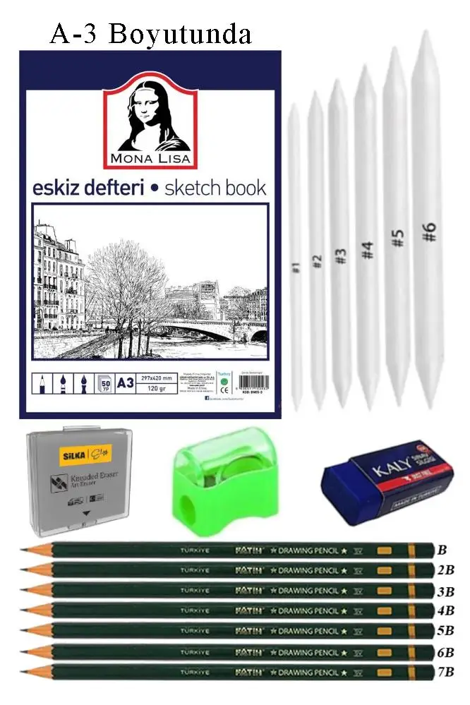 Ürün Adı: Eskiz Defteri A3 50 Yaprak Karakalem Çizim Seti Gölgelendirme Kalemi Hamur Silgi Fatih Dereceli Kalem Hobi Tasarım Seti