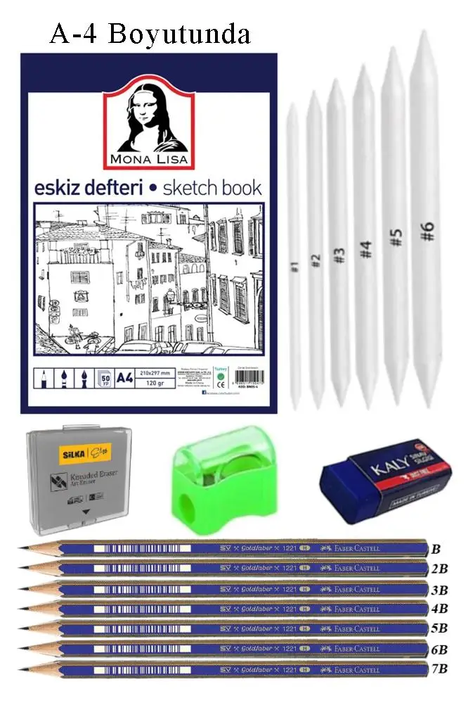 Ürün Adı: Eskiz Defteri A4 50 Yaprak Karakalem Çizim Seti Gölgelendirme Kalemi Hamur Silgi Faber Castell Dereceli Kalem Hobi Tasarım Seti