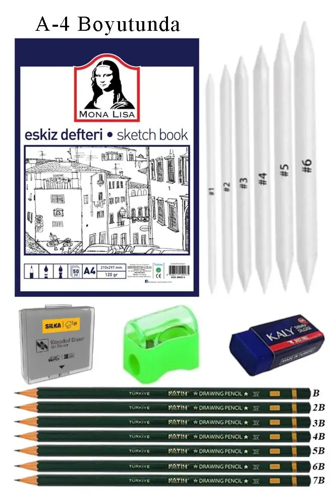 Ürün Adı: Eskiz Defteri A4 50 Yaprak Karakalem Çizim Seti Gölgelendirme Kalemi Hamur Silgi Fatih Dereceli Kalem Hobi Tasarım Seti