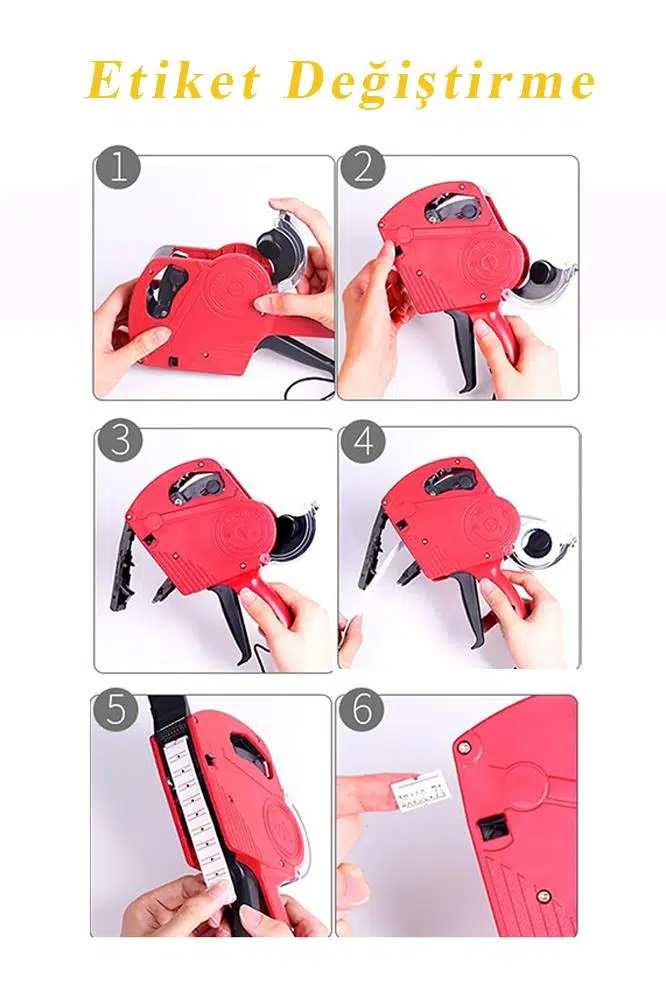 | Etiketler | Etiket Makinesi Kırmızı 1 Adet Fiyat Etiket Makinası 8 Haneli Yedek Kartuşlu Mağaza Dükkan Market İçin İdeal |