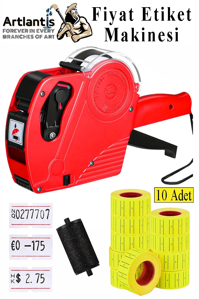 | Etiketler | Etiket Makinesi Kırmızı 1 Adet Sarı Fiyat Etiketi 10 Rulo Sekiz Haneli Fiyat Etiketi Makinası Lira Dolar Euro Dayanıklı |
