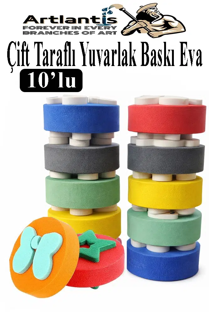 Ürün Adı: Artlantis Eva Sünger Baskı Seti 10 lu Çift Yönlü Yuvarlak 1 Paket 20 Çeşit Baskı Eva Şekilli Sünger Boya Damga Okul Öncesi Kreş