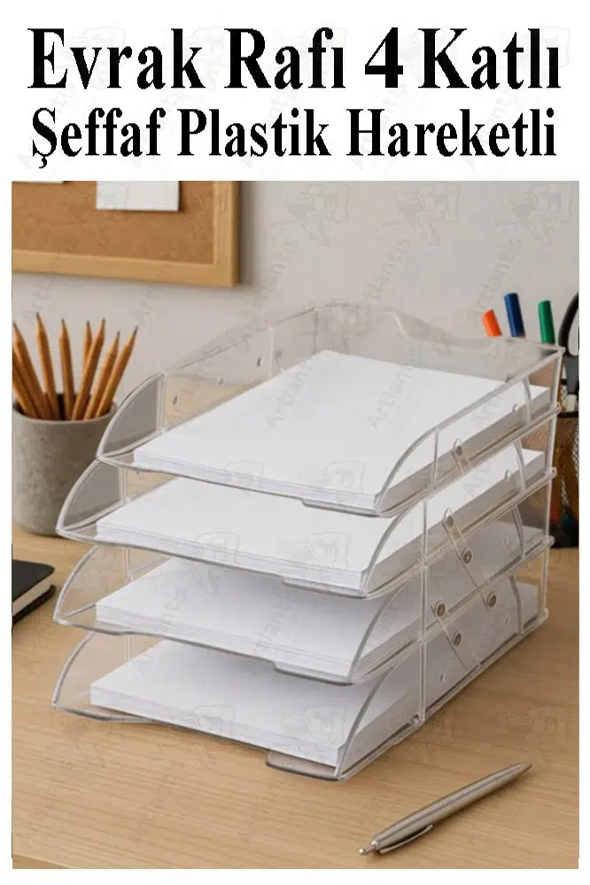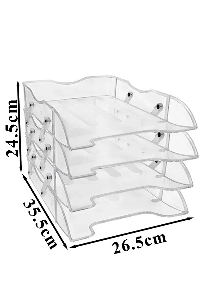 Ürün Adı: Evrak Rafı 4 lü Şeffaf Masaüstü 1 Paket Plastik Evrak Rafı Masa Üstü Şeffaf Hareketli A4 Dosya Düzenliyici Kağıt Tepsisi