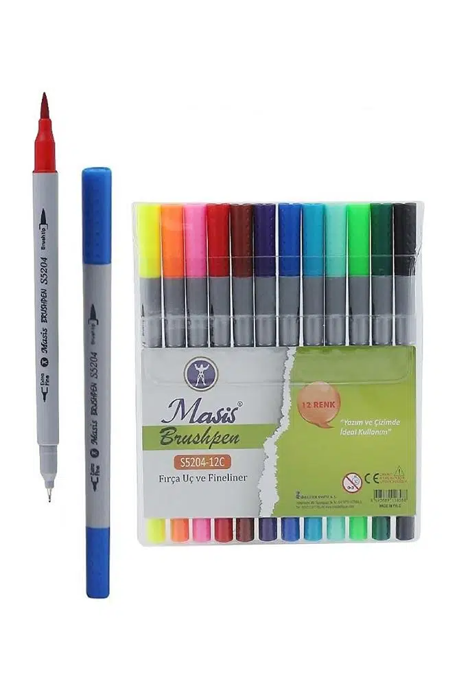 Ürün Adı: Fineliner Kalem Çift Yönlü 12 Renk 1 Paket Fırça Uç ve Fineliner Brushpen 12li Keçe Uçlu Kalem Kalın İnce Keçeli Kalem