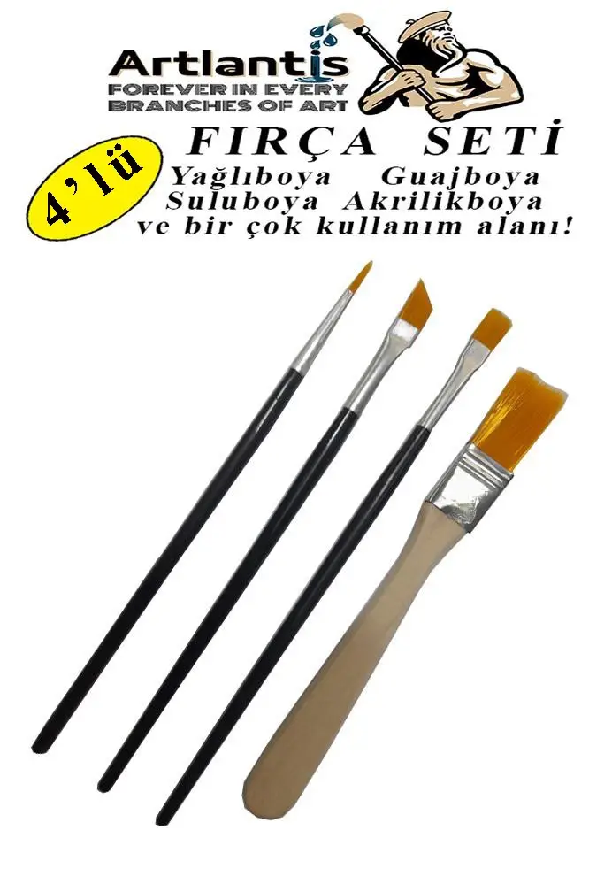 Ürün Adı: Fırça Seti 4 Lü Resim Fırçası 1 Paket Zemin Fırçası Suluboya Akrilik Boya Guaj Boya Yağlı Boya Fırca Seti Kesik