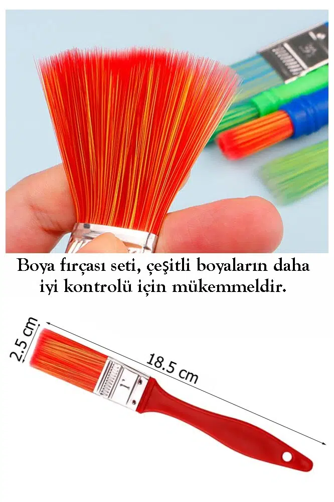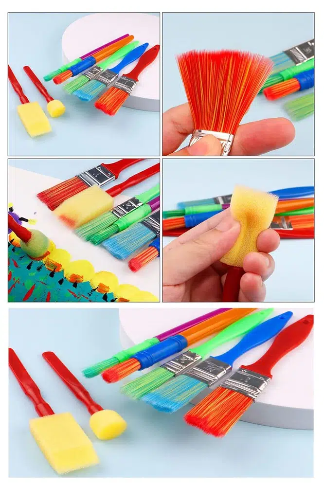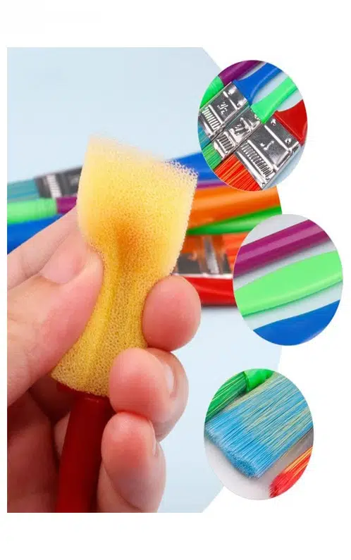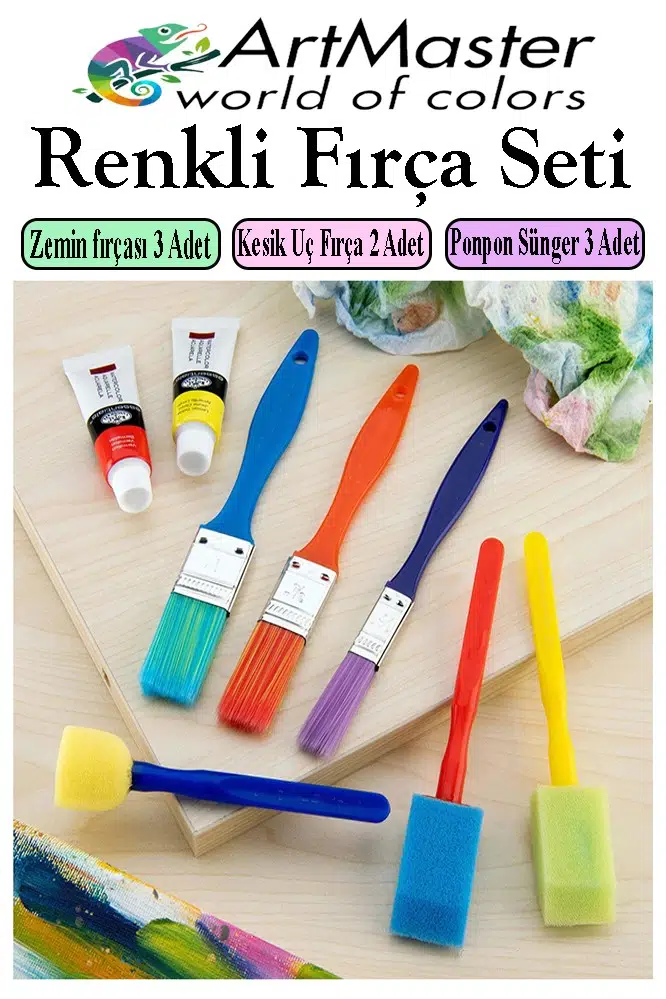 - 6 Parçalı Çeşitli Fırça Seti, harika bir sanat eseri yaratmak için farklı boyutlarda 3 ayrı fırça ve 3 sünger içerir!