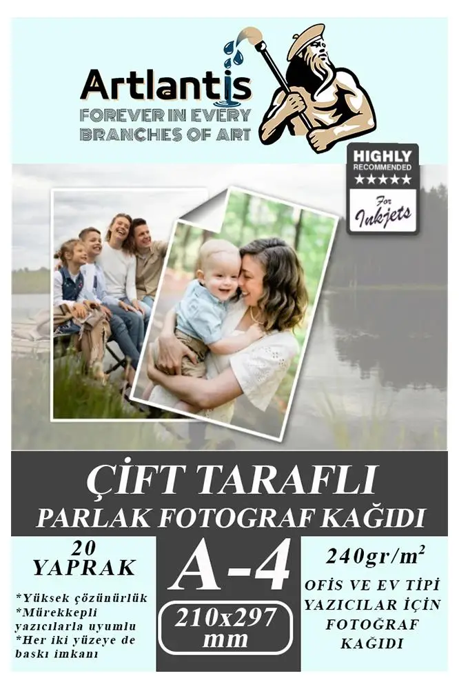 · Artlantis Fotoğraf Kağıdı, ipeksi kuşe türünde bir kağıt olup yüksek çözünürlüklü çıktılar almayı sağlayan bir üründür. Bu ürün, Canon ve Epson gibi markalara ait mürekkepli yazıcılarda da kullanılabilir. Cihazınızda baskı kalitesini "çok iyi" ya da "yüksek kalite" olarak seçtiğinizde oldukça kaliteli çıktılar alabilirsiniz. Çıktı çözünürlüğü gayet yüksek bir üründür.