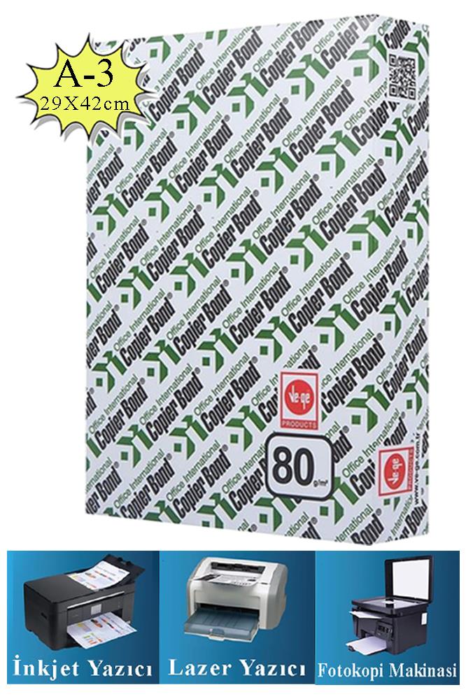 Ürün Adı: Fotokopi Kağıdı A3 29.7x42 cm 80 gr 500 lü 1 Paket Copierbond Fotokopi Kağıdı Lazer İnkjet ve Fotokopi Makineleri İçin Uyumlu