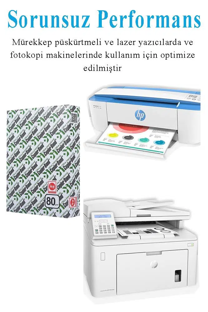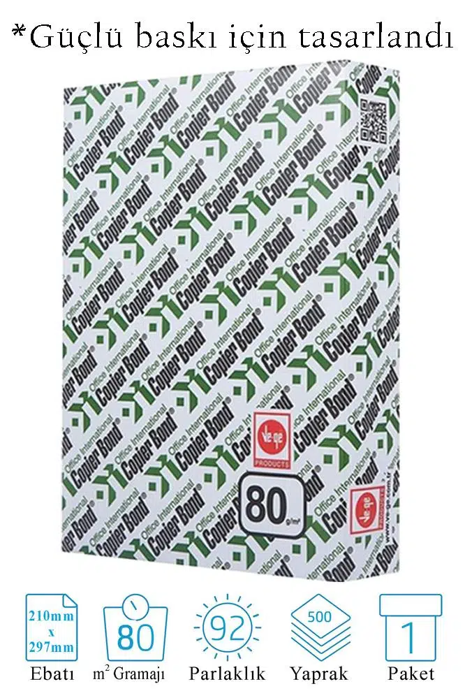 Ev veya ofis kullanımı için 21x29,7 cm beyaz fotokopi ve yazıcı kağıdı Çok amaçlı a4 boyutlu fotokopi kağıdı, lazer/mürekkep püskürtmeli yazıcılar, fotokopi makineleri ve faks makineleriyle çalışır Tutarlı mürekkep ve toner dağıtımı için pürüzsüz 80 gr ağırlığında kağıt; çabuk kurur ve kağıt sıkışmalarına karşı dayanıklıdır Parlak beyaz kağıt net baskı ve canlı renkler için mükemmel kontrast sunar