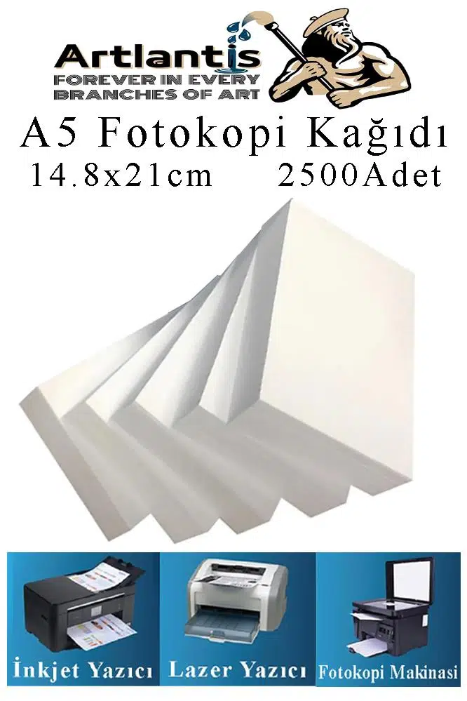 Ürün Adı: Fotokopi Kağıdı A5 80 gr 14.8x21 cm 500 lü 5 Paket Fotokopi Kağıdı Lazer İnkjet ve Fotokopi Makineleri İçin Uyumlu