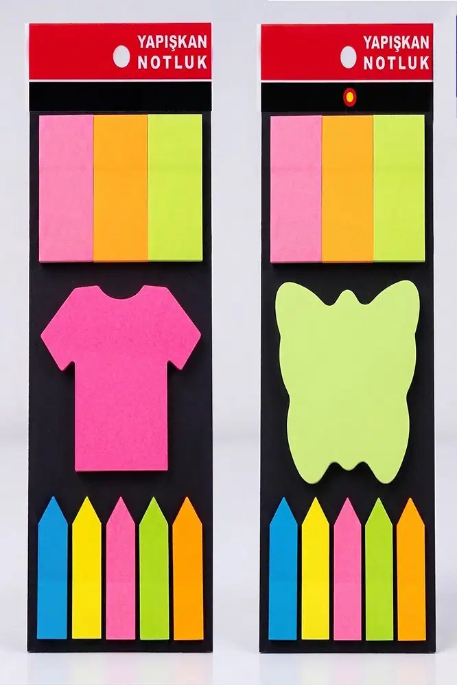 | Etiketler | Giysi Kelebek Şekilli Yapışkanlı Not Kağıdı 5 Renk 2 Adet Neon Renkler Neon Ayraç Karışık Şekilli Fosforlu Not Kağıdı |