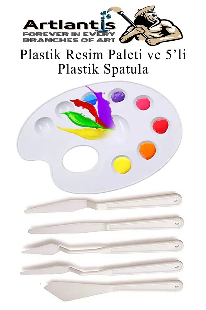 Ürün Adı: Godeli Plastik Resim Paleti ve 5 li Plastik Spatula 1 Paket Ressam Paketi Sanatsal Esnek Plastik Palet Bıçağı