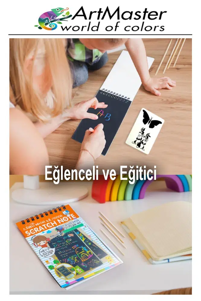 Ürün Adı: Artlantis Gökkuşağı Kazıma Defteri Sihirli A5 15x20 cm 1 Paket 10 Sayfa Spiralli Scratch Note Spralli Siyah Sihirli Resim Defteri
