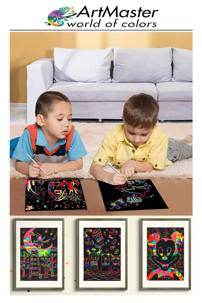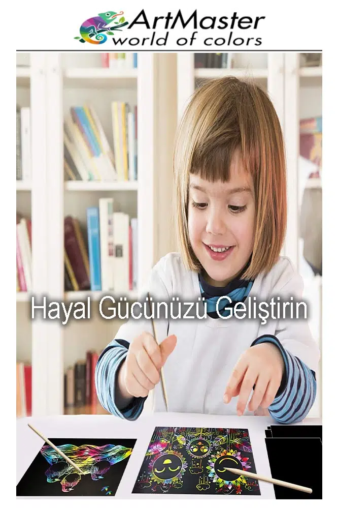 Ürün Adı: Artmaster Gökkuşağı Kazıma Kağıdı Sihirli A4 5 Yaprak 1 Paket 20x30 cm Sihirli Kazıma Kağıt Siyah Rainbow Paper Resim