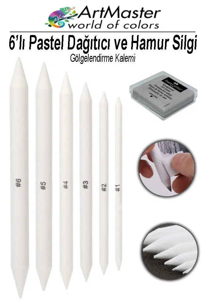 Ürün Adı: Artmaster Gölgelendirme Kalemi Pastel Dağıtıcı 6 Lı 1 Paket Ve 1 Adet Hamur Silgi Kalemi Kara Kalem Dağıtıcı Kalem Kaynaştırma