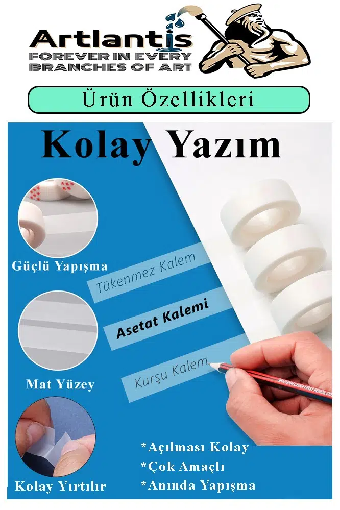 Özellik: Görünmez bant, uygulama ihtiyaçlarını karşılarken aynı zamanda mat bir yüzeye, uzun süreli tutma gücüne sahiptir, kalem, kurşun kalem veya işaretleyici ile yazılır.