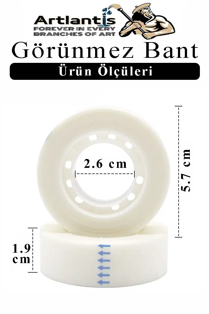 Görünmez bant genişliği 19 mm, uzunluk 30 metre'dir; Renk: Mat şeffaf