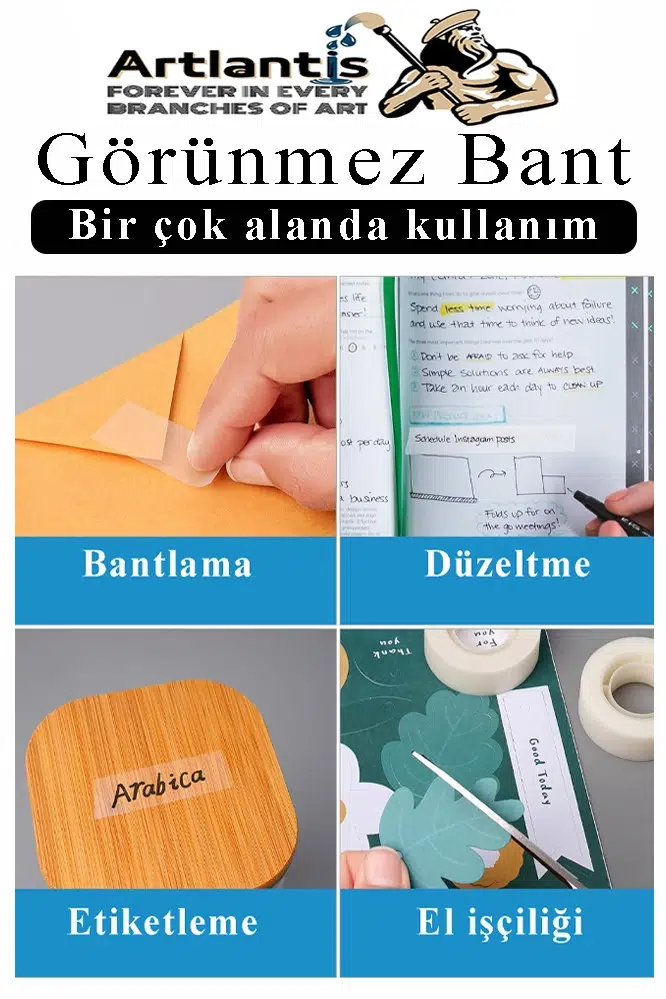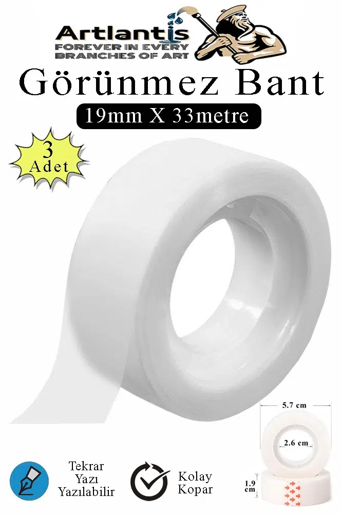 Ürün Adı: Görünmez Bant 19x33 Metre 3 Adet Şeffaf Görünmez Bant Aydınger Yazılabilir Mat Bant Büro Bandı Selefon Bant