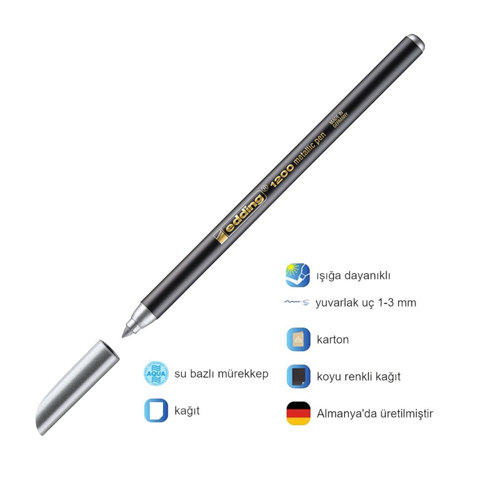 | Etiketler | Grafik Kalemi ve Davetiye Kalemi Metalik Gümüş Gri 1200 1 Adet Edding Gümüş Gri Keçe Uçlu Metalik Kalem 1 Adet |