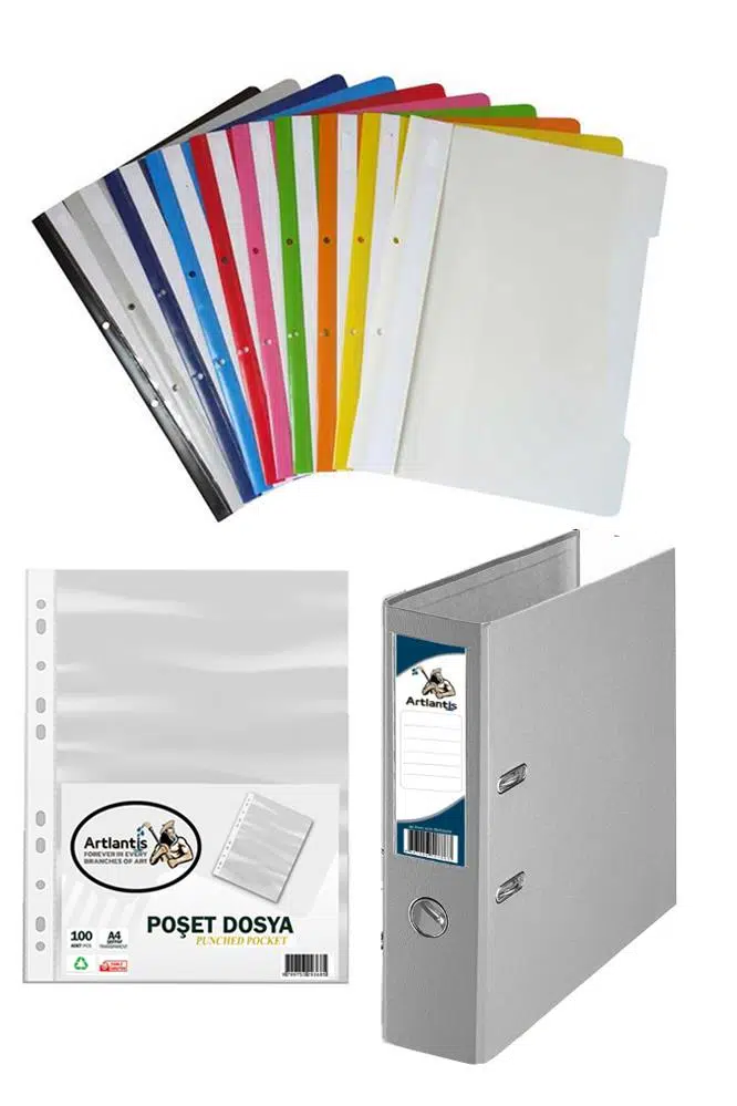 Ürün Adı: Gri Büro Klasörü Telli Dosya ve Poşet Dosya Seti 1 Adet Büro Klasörü 10 Renk Telli Dosya 100 Adet Poşet Dosya