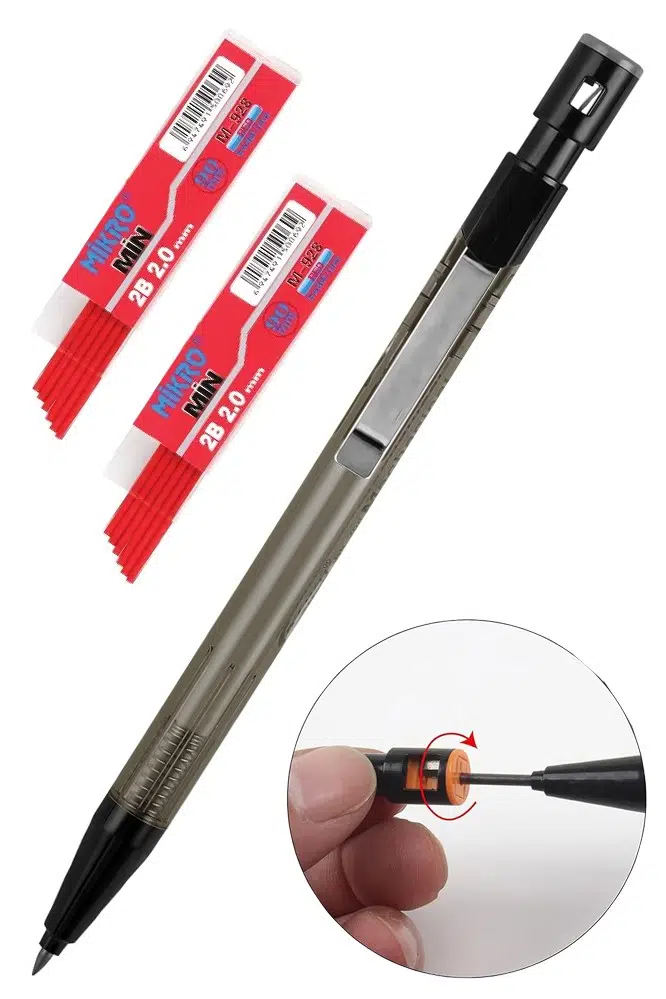 2,0 mm kalınlığında dolum bu mekanik kalemi dayanıklı hale getirir, diğer kırılgan mekanik kalemlerin aksine, mekanik kalemlerimiz yazma veya çizim sırasında dolumun kırılmamasını sağlar.