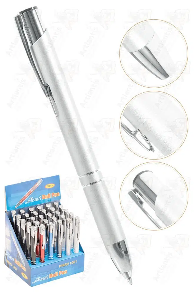 Ürün Adı: Gri Kısa Boylu Metal Tükenmez Kalem 1 Adet Yedek Uçlu Mavi Renkli Cep Kalemi Tükenmez Basmalı Mikro 1001 Mekanizmalı