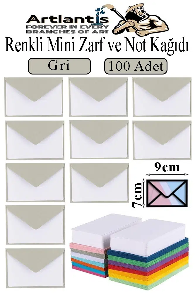 Ürün Adı: Gri Mini Zarf 7x9 cm Not Kağıtlı 100 Adet Küçük Gri Zarf Mektup Oyun Zarfı Doğum Günü Dilekleri Zarfı Canlı Renk