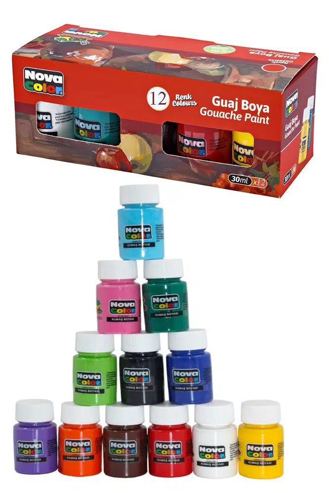 Ürün Adı: Guaj Boya 12 Renk 30 ml 1 Paket Nova Color Guaj Boya Seti 12 li Su Bazlı Şişe Canlı Renkler Resim Okul
