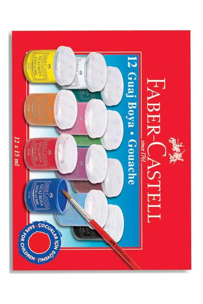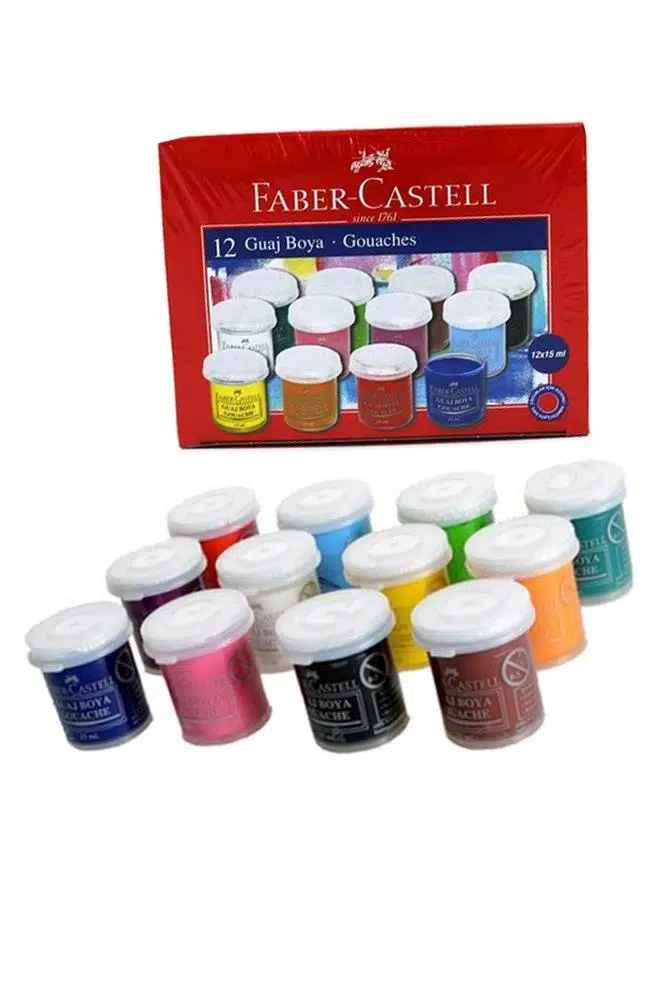 Ürün Adı: Guaj Boya 12 Renk x 15 Ml Su Bazlı Şişe 1 Paket Faber Guaj Boya Seti Şişe İçerisinde 12 li Okul Hobi