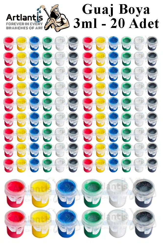 | Etiketler | Guaj Boya 3 ml 6 Renk 20 Paket Mini Küçük Guaj Boya Etkinlik Boyama Boyası Su Bazlı Resim Okul Öncesi Kreş Ana Sınıfı |